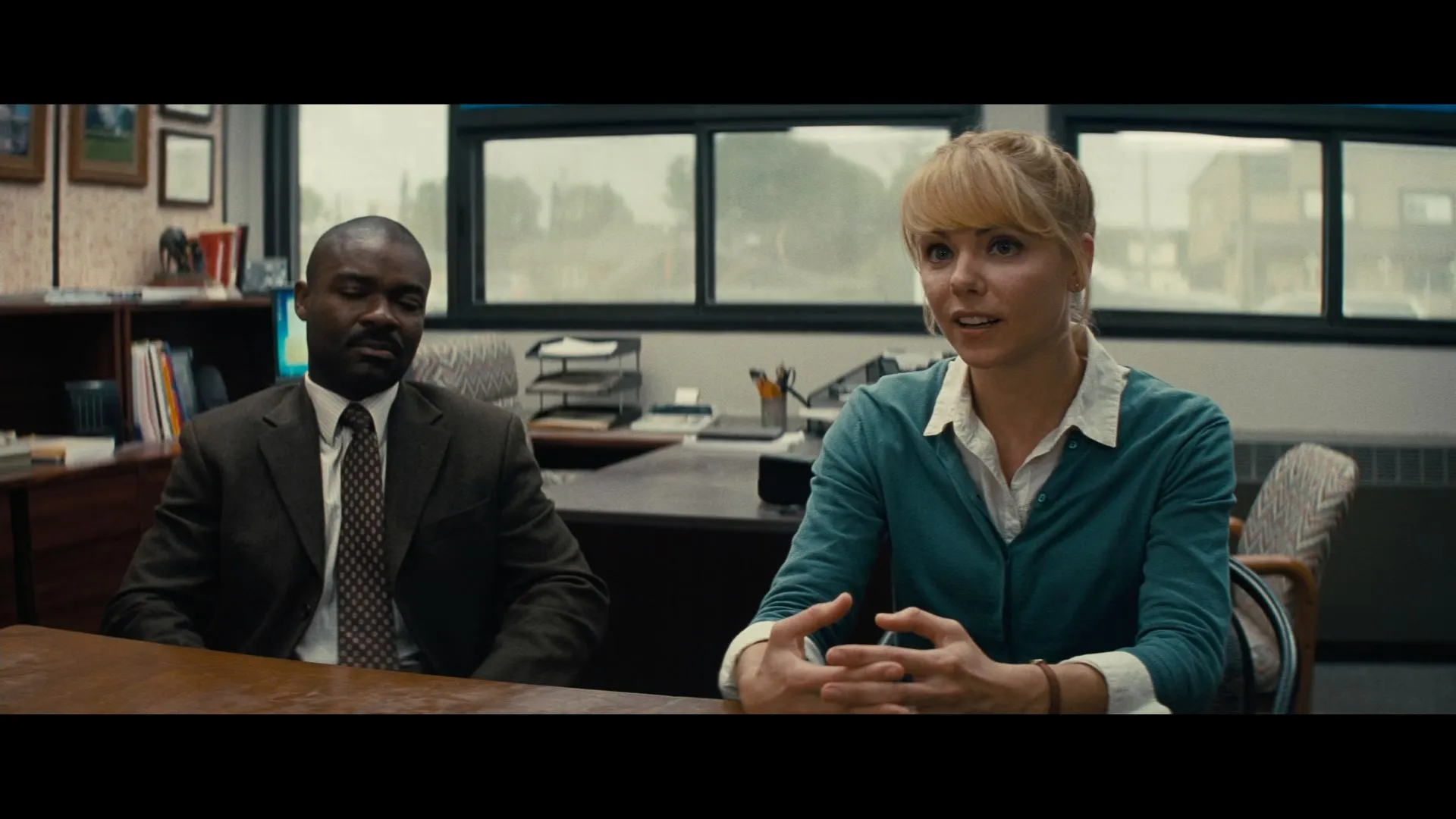 Cast: Matthew McConaughey as Joseph "Coop" Cooper, Anne Hathaway as Dr. Amelia Brand, Jessica Chastain as Murphy "Murph" Cooper, Bill Irwin as TARS (voice), Ellen Burstyn as Old Murph, Michael Caine as Professor John Brand, Mackenzie Foy as Young Murph, Casey Affleck as Tom Cooper, John Lithgow as Donald, Wes Bentley as Doyle, David Gyasi as Romilly, Matt Damon as Mann, Topher Grace as Getty, Timothée Chalamet as Young Tom, David Oyelowo as School Principal, William Devane as Williams, Josh Stewart as CASE (voice), Collette Wolfe as Ms. Hanley, Leah Cairns as Lois, Russ Fega as Crew Chief, Lena Georgas as Nurse Practitioner, Jeff Hephner as Doctor, Elyes Gabel as Administrator, Brooke Smith as Nurse, Liam Dickinson as Coop, Francis X. McCarthy as Boots, Andrew Borba as Smith, Flora Nolan as Girl on Truck, William Patrick Brown as NASA Employee (uncredited), Kristian Van der Heyden as Scientist (uncredited), Joseph Oliveira as Astronaut (uncredited), Ryan Irving as Popcorn Seller (uncredited), Alexander Michael Helisek as Construction Boss (uncredited), Benjamin Hardy as NASA Scientist (uncredited), Griffen Fraser as Boy on Truck