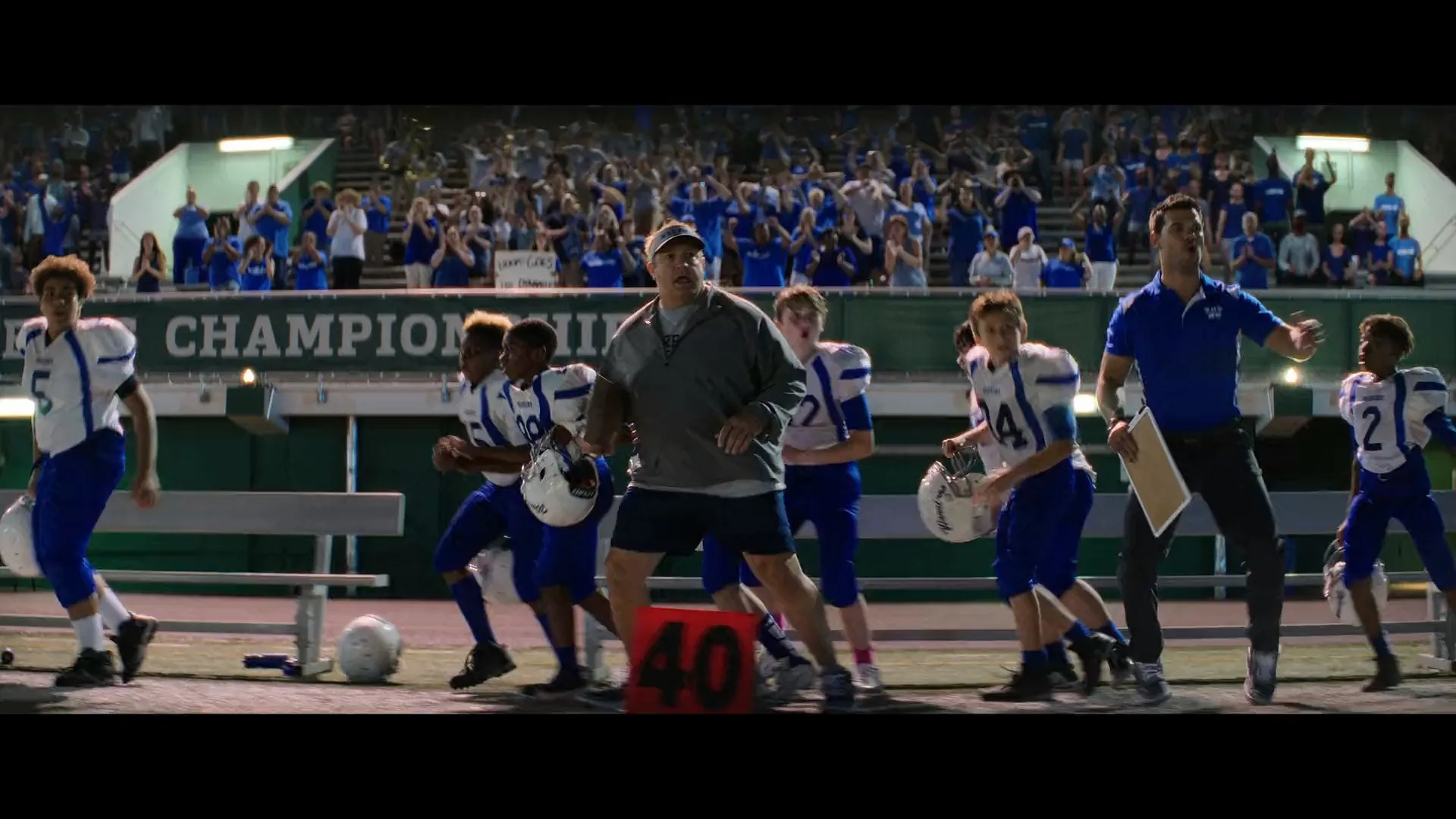 Cast: Kevin James as Sean Payton, Taylor Lautner as Coach Troy Lambert, Rob Schneider as Jamie, Jackie Sandler as Beth, Tait Blum as Connor Payton, Gary Valentine as Coach Mitch Bizone, Lavell Crawford as Gus the bus driver, Chloe Fineman as Intern Emily, Maxwell Simkins as Paulie, Jacob Perez as Marcos, Bryant Tardy as Dennis, Manny Magnus as Harlan, Liam Kyle as Nate, Christopher Farrar as Jason, Merek Mastrov as Brian, Isaiah Mustafa as Porcupine Coach, Jared Sandler as Eric, Sean Payton as Lionel the Custodian, Tracy Wolfson as Sideline Reporter, Dan Patrick as Self, Bill Cowher as Self, Jim Nantz as Self