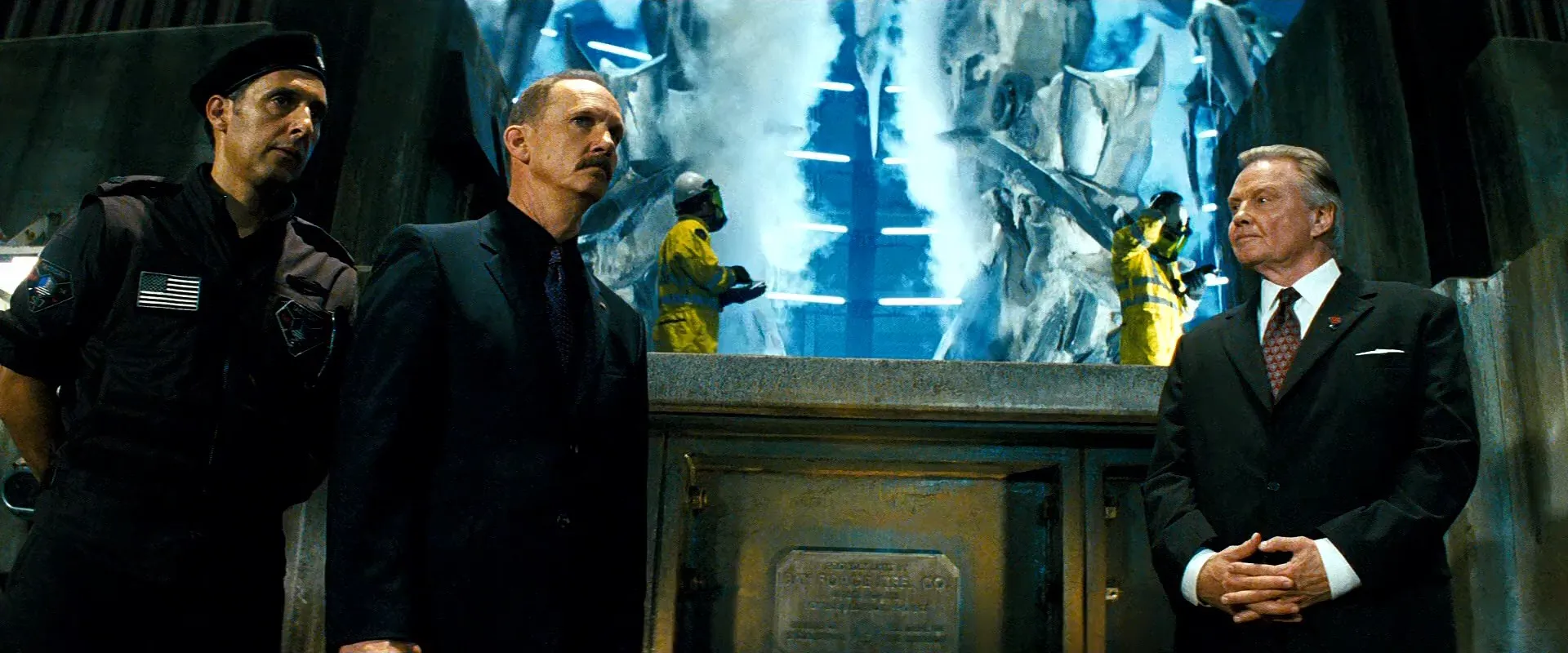 Cast: Shia LaBeouf as Sam Witwicky, Megan Fox as Mikaela Banes, Josh Duhamel as Captain Lennox, Tyrese Gibson as USAF Tech Sergeant Epps, Rachael Taylor as Maggie Madsen, Anthony Anderson as Glen Whitman, Jon Voight as Defense Secretary John Keller, John Turturro as Agent Simmons, Michael O'Neill as Tom Banacheck, Kevin Dunn as Ron Witwicky, Julie White as Judy Witwicky, Amaury Nolasco as ACWO Jorge "Fig" Figueroa, Zack Ward as First Sergeant Donnelly, Patrick Mulderrig as Ranger Team, Luis Echagarruga as Ranger Team, Michael Trisler as Ranger Team, Brian Shehan as Ranger Team, Ashkan Kashanchi as Mahfouz, Rizwan Manji as Akram, William Morgan Sheppard as Captain Witwicky, C.J. Thomason as Sailor, Bernie Mac as Bobby Bolivia, Carlos Moreno Jr. as Manny, Johnny Sanchez as Clown, John Robinson as Miles, Travis Van Winkle as Trent, Peter Jacobson as Mr. Hosney, Glenn Morshower as SOCCENT Sergeant, Frederic Doss as SOCCENT Op-Centre Tech, Charlie Bodin as SOCCENT Op-Centre Tech, Joshua Feinman as USAF Staff Sergeant, Chris Ellis as Admiral Brigham, Brian Stepanek as Sector Seven Agent, Steven Ford as Four Star General, Michael Shamus Wiles as Two Star General, Andy Milder as R&D Team Leader, Craig Barnett as Air Force Major General, Brian Prescott as Keller Aide, Scott Peat as Pentagon Watch Commander, Colleen Porch as Enlisted Aide, Jamie McBride as FBI Agent, Wiley M. Pickett as FBI Agent, Samantha Smith as Sarah Lennox, Ravi Patel as Telephone Operator, Rick Gomez as Sheriff, Andy Domingues as Deputy, Mike Fisher as Football Coach, Colin Fickes as Analyst, Tom Lenk as Analyst, Jamison Yang as Analyst, Esther Scott as Glen's Grandmother, Madison Mason as CNN Reporter, Jeremy Jojola as News Reporter, Jessica Kartalija as News Reporter, Andrew Altonji as Café Kid, Andrew Lewis Caldwell as Café Kid, J.P. Manoux as Witness, Pete Gardner as Dad, Sophie Bobal as Little Girl, Laurel Garner as Mom in Car, Chip Hormess as Boy in Car, Ray Toth as Pilot, Michael Adams as AWACS Controller, Ron Henry as AWACS Controller, Benjamin Hoffman as AWACS Controller, Michael McNabb as AWACS Controller, Jason White as AWACS Controller, Adam Ratajczak as Control Tower Tech, Maja Kljun as Socialite, Michelle Pierce as Socialite, Odette Annable as Socialite, Bob Stephenson as Xbox Guy, Mason Rock Bay as Self, Peter Cullen as Optimus Prime (voice), Mark Ryan as Transformers (voice), Darius McCrary as Jazz (voice), Robert Foxworth as Ratchet (voice), Jess Harnell as Ironhide / Barricade (voice), Hugo Weaving as Megatron (voice), Jimmie Wood as Bonecrusher (voice), Reno Wilson as Frenzy (voice), Charlie Adler as Starscream (voice), Michael Bay as Guy Flicked by Megatron (uncredited), Colton Haynes as Cafe Kid (uncredited), Brian Reece as Moustache Man, Robert Gerrits as Secret Service Agent (uncredited)