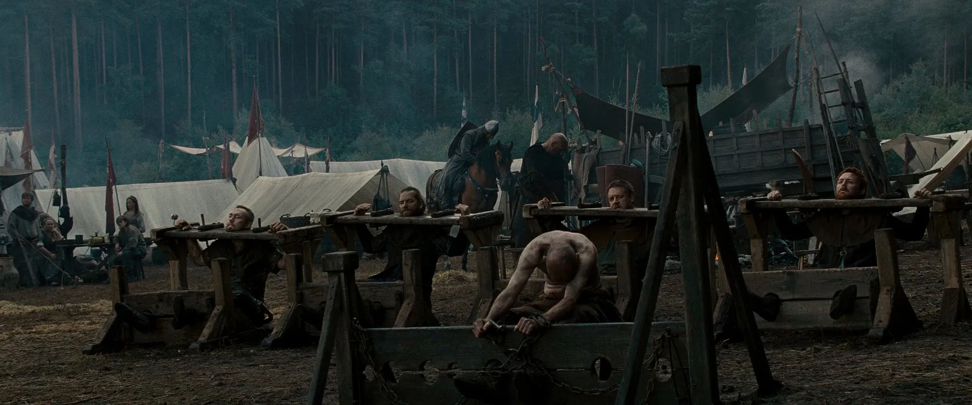 Cast: Russell Crowe as Robin Longstride, Cate Blanchett as Marion Loxley, Max von Sydow as Sir Walter Loxley, William Hurt as William Marshal, Mark Strong as Godfrey, Oscar Isaac as Prince John, Danny Huston as King Richard the Lionheart, Eileen Atkins as Eleanor of Aquitaine, Mark Addy as Friar Tuck, Matthew Macfadyen as Sheriff of Nottingham, Kevin Durand as Little John, Scott Grimes as Will Scarlet, Alan Doyle as Allan A'Dayle, Douglas Hodge as Sir Robert Loxley, Léa Seydoux as Isabella of Angoulême, Jonathan Zaccaï as King Philip of France, Robert Pugh as Baron Baldwin, Gerard McSorley as Baron Fitzrobert, Velibor Topic as Belvedere, Ciaran Flynn as Loop, Simon McBurney as Father Tancred, Denise Gough as Village Mother, John Nicholas as Farmer Paul, Thomas Arnold as Captain of the Royal Barge, Pip Carter as Royal Equerry, Mark Lewis Jones as Stone Mason Longstride, Bronson Webb as Jimoen, Denis Ménochet as Adhemar, Jamie Beamish as Church Deacon, John Atterbury as Exchequer, Luke Evans as Sheriff's Thug, Roy Holder as Gaffer Tom, Mark Ryder as Baron Baldwin's Grandson, Ruby Bentall as Margaret Walter's Maid, Ned Dennehy as Sentinel, Nicolas Simon as Slovenly French Cook, Lisa Millett as Walter's Cook, Stuart Martin as Messenger, Jessica Raine as Princess Isabel of Gloucester, Steve Evets as Ragged Messenger, Eric Rulliat as Ruffian, Abraham Belaga as King Philip's Aide, Jack Downham as Young Robin, Richard Riddell as Sentry, David Bertrand as French Captain, Arthur Darvill as Groom, Giannina Facio as Lady-in-Waiting, Hannah Barrie as Woman at Bog, Lee Battle as Soldier Boy, Nicky Bell as Soldier Two, Andrea Ware as Little John's Wench, John O'Toole as Tom the Pig Man, Ralph Ineson as Northerner, Zuriel de Peslouan as French Informant, Jake Curran as Distinctive Man, Samuel Dupuy as French Flagship Captain, Nick Lucas as Justiciar, Alan Charlesworth as Cardinal Roger, Lothaire Gerard as French Boy, Mat Laroche as Laughing French Soldier, Chris Jared as Equerry, Joseph Hamilton as Feral Child, James Hamilton as Feral Child, James Burrows as Feral Child, Danny Clarke as Feral Child, Tom Blyth as Feral Child, Lee Nicholas Harris as Archer (uncredited), Michael Koltes as Tax Collector (uncredited), Umit Ulgen as Archer (uncredited), Robert J. Fraser as English Pikeman (uncredited), Ryan Stuart as French Soldier (uncredited), Harvey Walsh as Village boy (uncredited), Will Richardson as Feral Boy (uncredited)